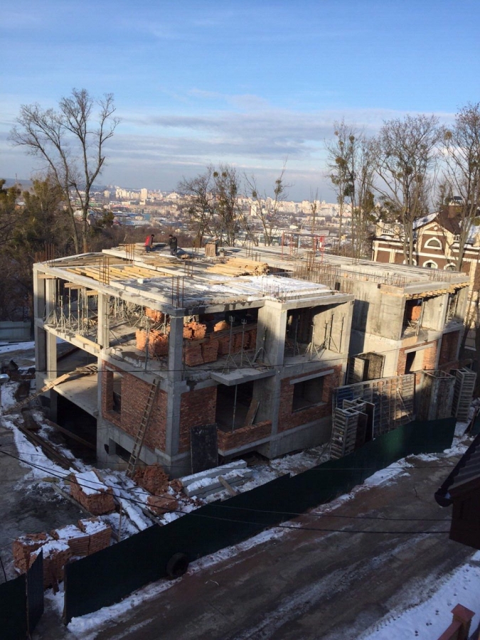 28.01.2016 - Заливка ступеней лестницы, балконов 3 этажа, колонн и пилонов